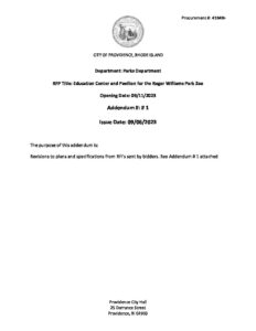 Parks Department – Education Center and Pavilion for the Roger Williams Park Zoo Addendum 1