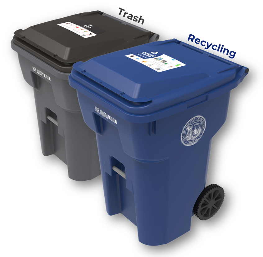 Delivery of new trash and recycling carts will begin on March 16, 2026. All carts will be delivered by June 2026. All cart deliveries and removals will occur on one of your normal trash and recycling collection days during that period. Check back to this website for updated information about when to expect carts to be delivered/removed in your neighborhood.